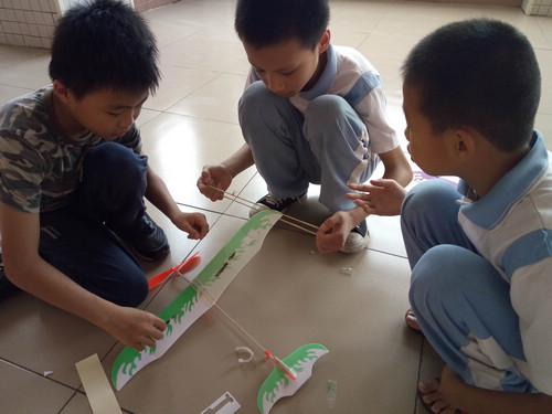 下午梁老师为学生带来橡筋飞机,通过梁老师的介绍,学生对橡筋飞机的飞行原理、动力组成有了较深的认识。除此之外,同学们还进行了实践练习,在分配好的小组中把橡筋飞机的各个部分组装起来,年纪较小的三年级学生在高年级学生帮助下出色完成了自己小组的任务,收获颇丰。