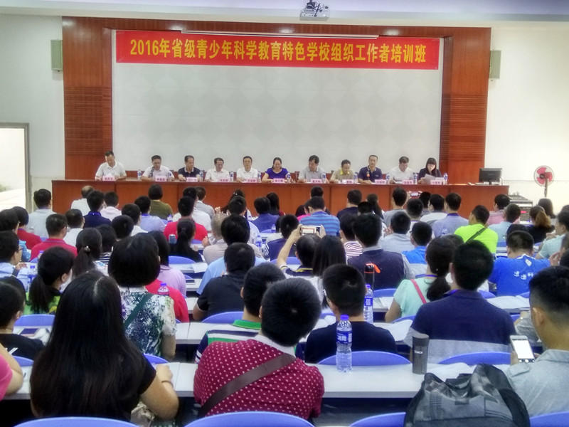 9月21日至24日,2016年省级青少年科学教育特色学校组织工作者培训班在汕尾市陆河中学成功举办,省科协科普部部长黄善辉、省教育研究院教学教材研究室科学科主任王益群、省科技厅政策法规处副调研员夏兴林、省青少年科技中心主任叶新鹏、汕尾市科协常务副主席范志能和陆河县人民政府副县长连小珊等领导嘉宾,以及全省各地100多名青少年科技教育机构和学校的组织者参加。