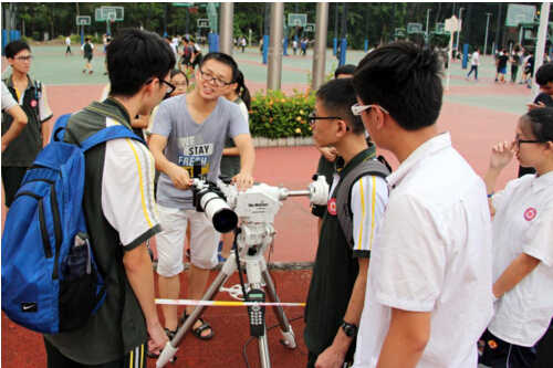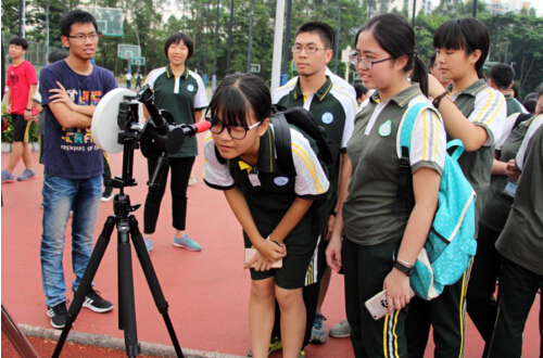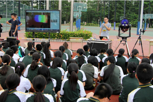 9月19日,正值“全国科普日”期间,东莞科学馆联合东莞理工学院天文协会到东莞高级中学举办天文科普活动。来自该校高一、高二学生近300人参加了活动。本次天文科普活动从下午开始持续到晚上。