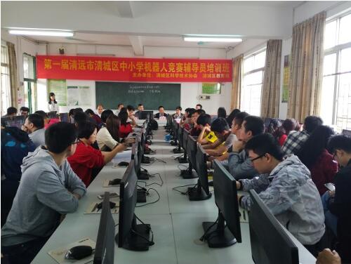 4月7日,由清远市清城区科协、清城区教育局联合主办的“2017年清城区首届机器人竞赛辅导员培训班”在后街小学正式开班,清远市教育教学研究院信息技术部主任江志和、清远市教育教学研究院干部余宇宙、黄灏以及来自全区有关中小学校的64名科技教师参加了此次的培训。