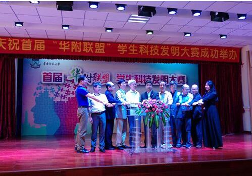 4月28日,由华南师范大学教育发展中心主办的“首届‘华附联盟’学生科技发明大赛”在广州市黄埔区华南师范大学附属初级中学成功举办。来自“华附联盟”内10所学校的共138件入围作品参加了本次大赛,近2000人次的师生观摩了本次活动。惠阳华附选送的15项作品通过科技小组师生的努力全部通过初评进入本次现场决赛,并荣获共7项一等奖中的4项、共28项二等奖中的10项、1项三等奖,李俊华老师荣获优秀辅导教师,惠阳华附荣获优秀组织奖。