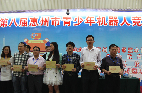 4月18日,惠州市第八届青少年机器人大赛在市科技馆隆重举行,惠东县组织14支代表队共54名师生参加了竞赛。经过公平、公开、公正的评审,惠东县代表队取得较好的成绩:综合技能比赛,获一等奖1项,二等奖1项,三等奖4项;创意比赛,获一等奖2项,三等奖4项。其中,惠东中学勇士队和鹏宇队将代表惠州市参加5月8-10日在东莞市石龙中学举行的第十五届广东省青少年机器人竞赛。